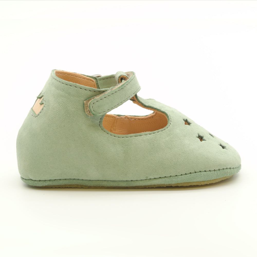 superweicher, chromfrei hergestellter Krabbelschuh Ballerina aus Frankreich in hellgrün