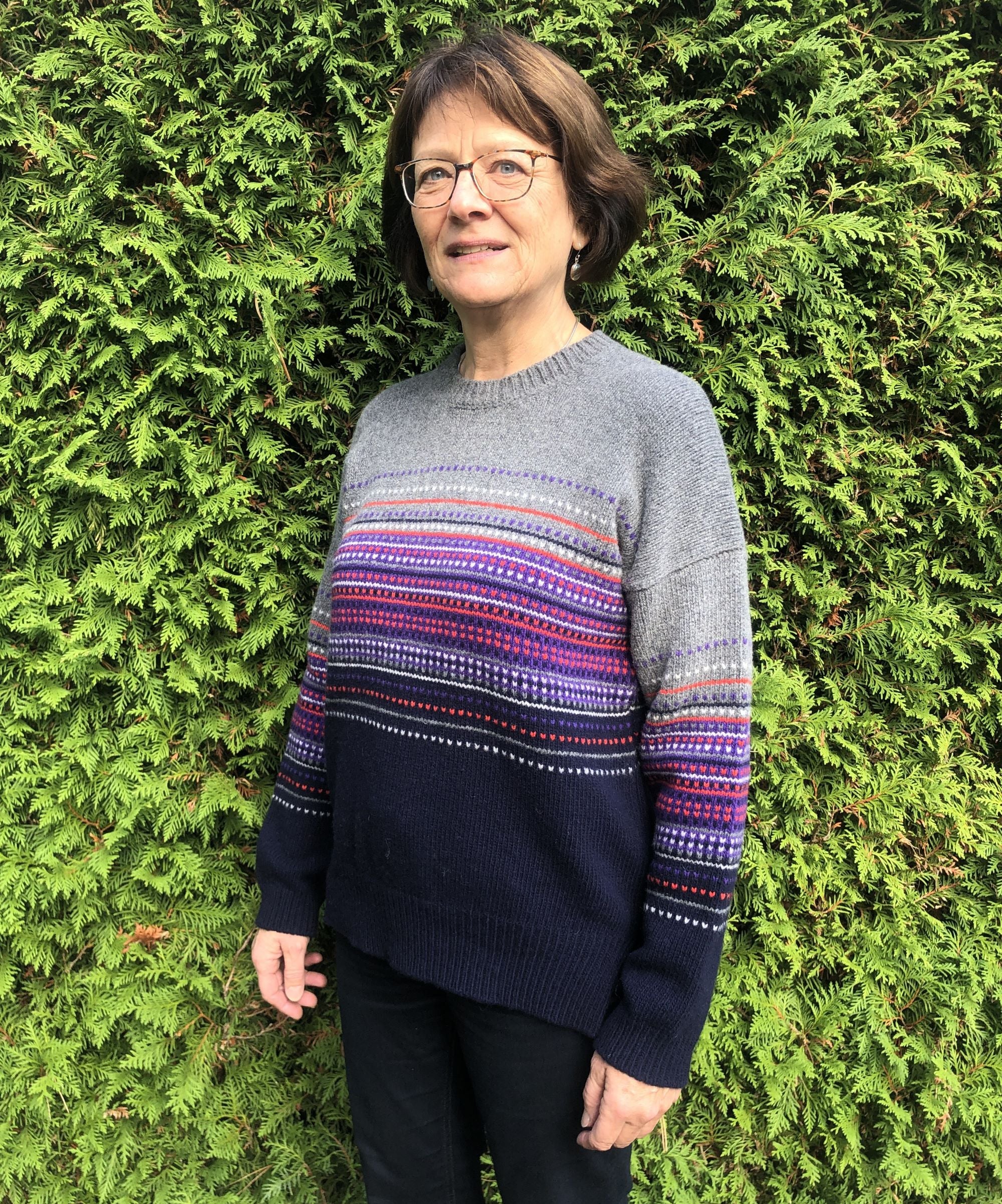 gerader Pulli mit Muster und Farbverlauf in gewohnter Qualität von fisherman out of ireland in grau - lila - rot - navy