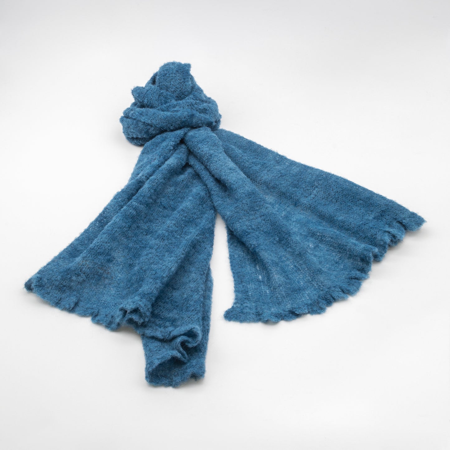flauschiger gestrickter Schal aus Alpaka in jeans-blau in Boucle-Optik von LANALPAKA aus Achen