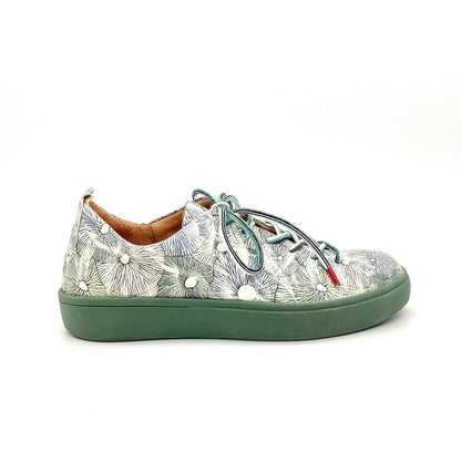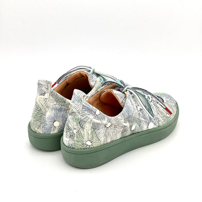 bequemer, sommerlicher Schnürschuh aus Leder aus der GRING-Reihe mit floralem Druck in blau-grün von Think!